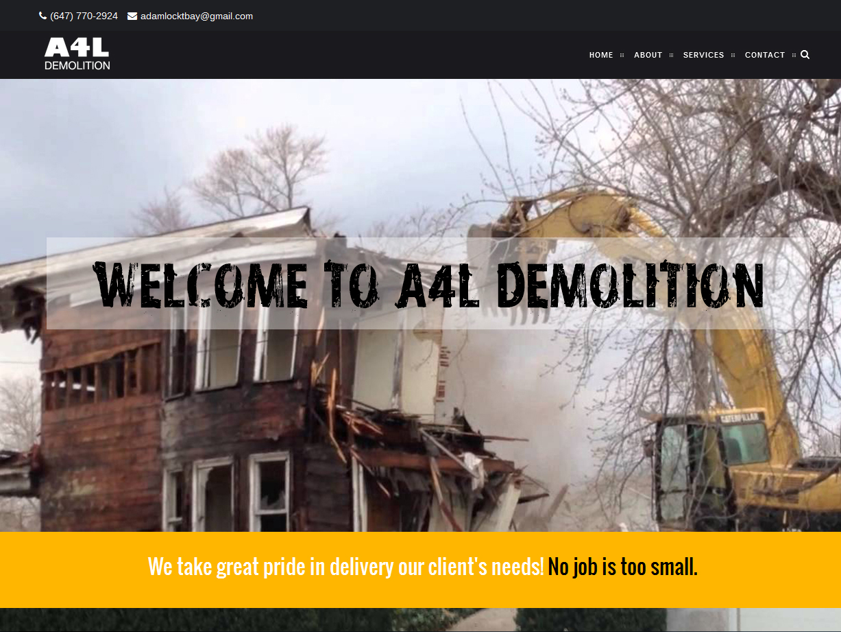 A4L is a demolition and renovations company. This site was built from a pre-designed template fully responsive and customized with their own content. Mobile responsive and up to date with latest web standards.